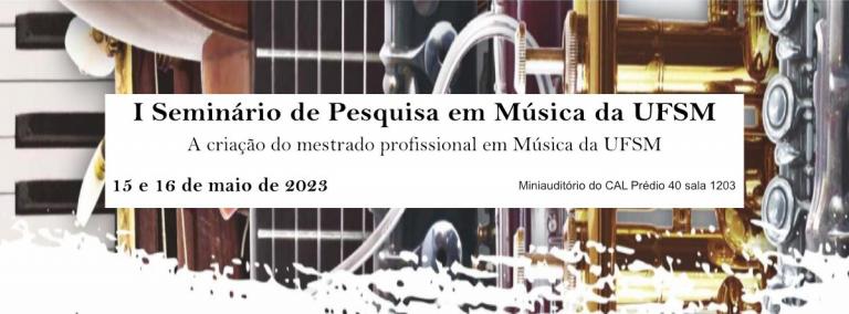 O I Seminário de Pesquisa em Música da UFSM tem como tema principal a criação do mestrado profissional em Música da UFSM. O evento contará com palestras e mesas-redondas que visam discutir o perfil e os objetivos da criação deste novo curso. Também haverá comunicações docentes e discentes relacionadas aos projetos de pesquisa dos docentes que integram a proposta de criação do curso de mestrado profissional da UFSM. O evento é aberto a toda a comunidade acadêmica do CAL, em especial a discentes e egressos interessados em pesquisa e que almejam ingressar na pós-graduação.