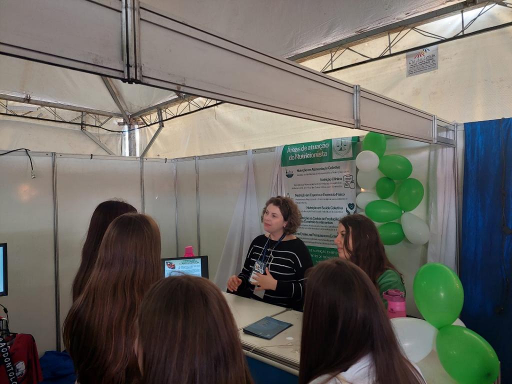 Entre os dias 28 e 30/10 a Nutrição UFSM Santa Maria esteve presente no Descubra, informando o público sobre as áreas de atuação do nutricionista, mercado de trabalho e currículo dos Cursos de Nutrição de SM e PM. A participação contou com o apoio de professores, da Nutricionista Camila Gressler (Técnica em Assuntos Educacionais) e da acadêmica Carolina Morosetti. As participantes fizeram ampla divulgação e sanaram dúvidas do grande público que procurou o estande e ainda distribuíram flyers e folders com informações sobre as áreas de atuação, currículo do curso e os 10 Passos para uma Alimentação Adequada e Saudável. O Curso de Nutrição da UFSM SM ratificou a importância do Curso no Campus Sede, para Santa Maria e região, tendo em vista a grande procura por informações no Descubra! Aguardamos ansiosos a nova turma que está por vir!