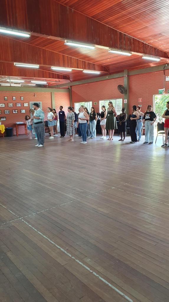 O DTG Noel Guarany, da UFSM, abrilhantou a manhã com apresentações culturais, além de promover oficinas de danças típicas gaúchas e de churrasco gaúcho, contribuindo para ampliar a vivência cultural e fortalecer a integração entre os participantes.