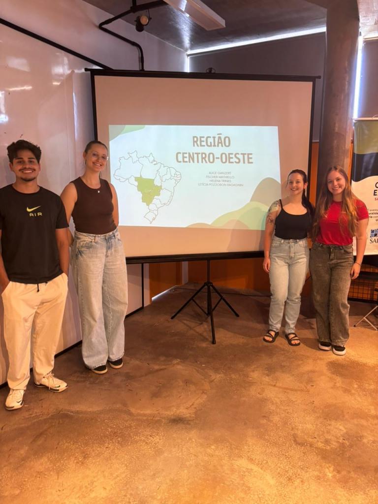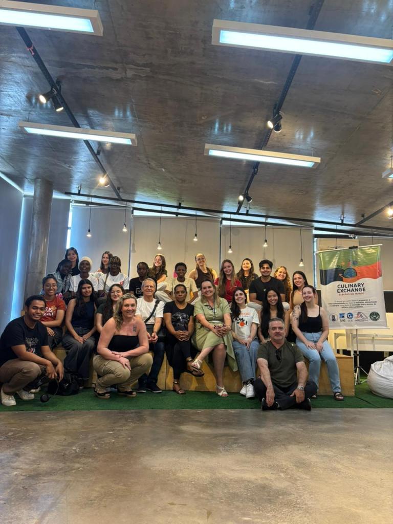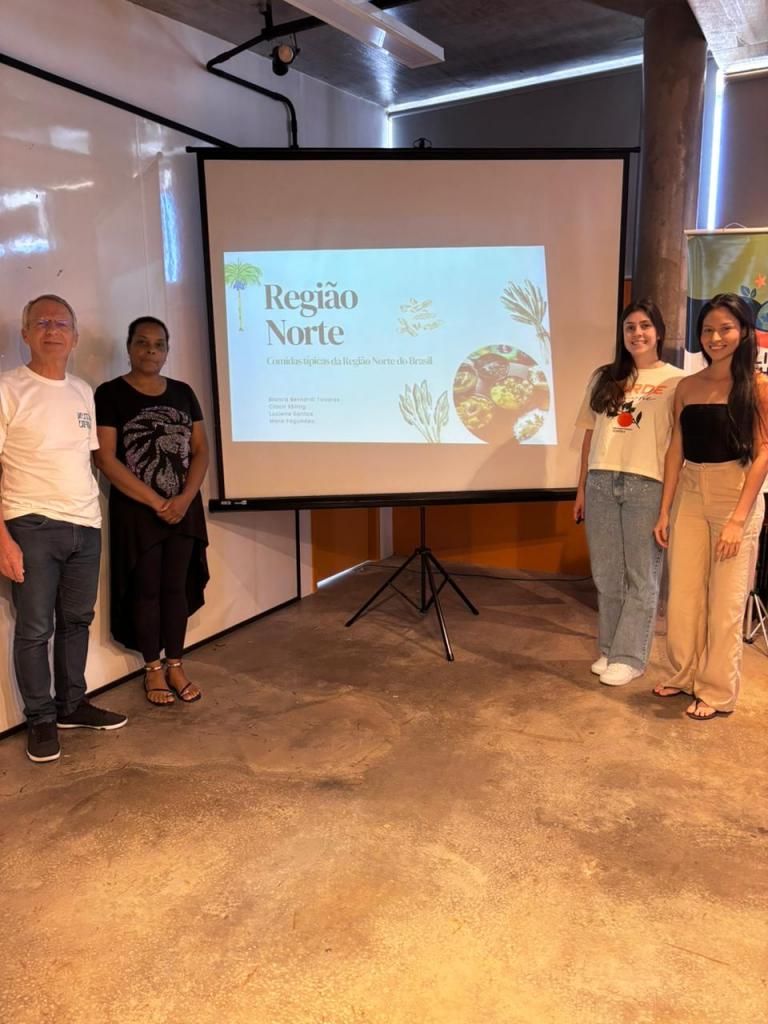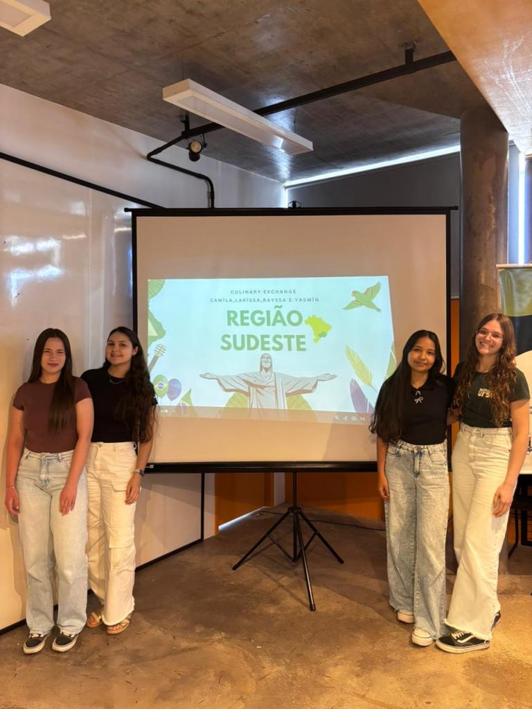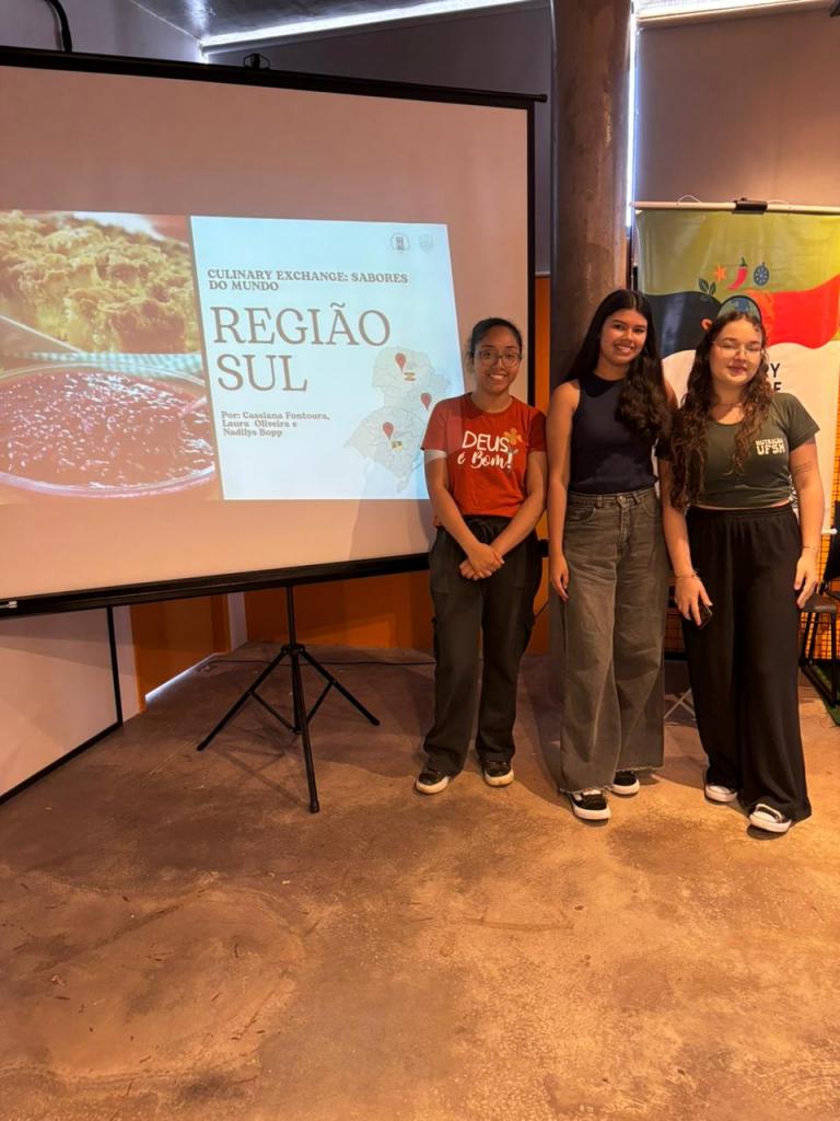 O projeto Culinary Exchange: Sabores do Mundo tem como objetivo promover a interculturalidade e o aprendizado colaborativo entre estudantes intercambistas, de diferentes origens, e alunos do Curso de Nutrição da UFSM. Desenvolvido em duas etapas ao longo do ano, sua edição mais recente ocorreu nos dias 27 e 29/11, sendo dedicada à culinária regional brasileira. Nessa fase, os estudantes de Nutrição atuaram como facilitadores, preparando pratos típicos das cinco regiões do país e compartilhando suas histórias, significados e contextos culturais com os intercambistas.