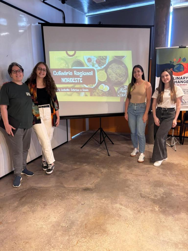 Cada grupo realizou uma pesquisa aprofundada sobre as receitas, abordando a origem dos ingredientes, bem como as implicações culturais e sociais associadas aos pratos selecionados. Além das apresentações orais, que ocorreram no Seminário do Culinary Exchange no dia 27/11, os participantes também tiveram a oportunidade de vivenciar a prática culinária, o que favoreceu uma rica troca de conhecimentos e experiências, durante o evento que ocorreu no sábado, dia 29/11.