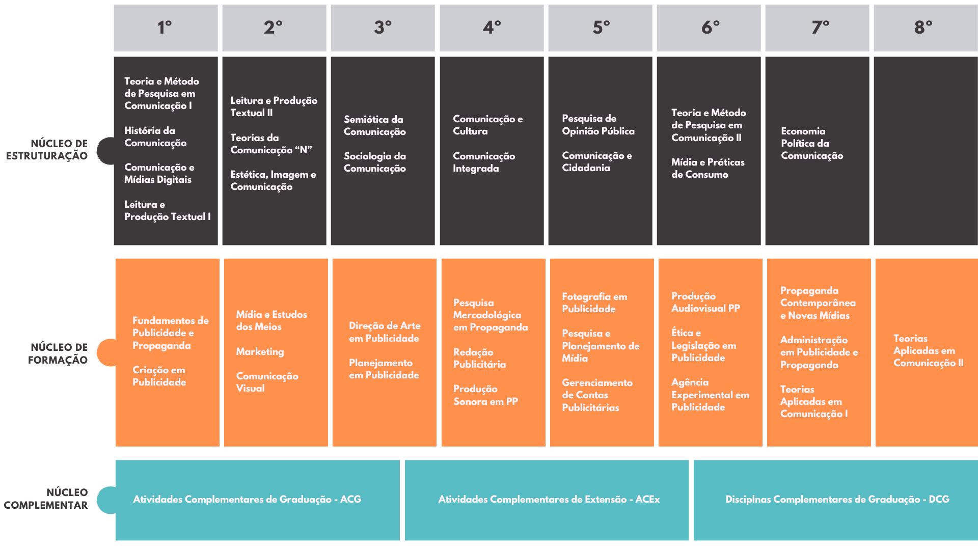 É formado pelas disciplinas fundamentais para a formação profissional em Publicidade e Propaganda, tendo como objetivo alcançar um perfil profissional que contemple o Projeto Pedagógico do Curso de Comunicação Social – Publicidade e Propaganda, o Projeto Político-Pedagógico da UFSM e as Diretrizes Curriculares Nacionais da Câmara de Educação Superior/Conselho Nacional de Educação/Ministério da Educação.