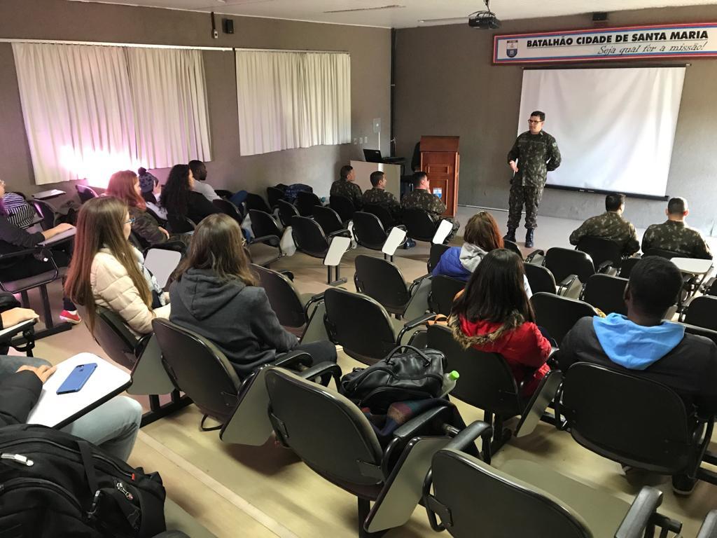 Nos dias 26 e 27 de junho foi realizado um treinamento para a “Operação Acolhida” no 29º Batalhão de Infantaria e Blindados de Santa Maria. O evento contou com a participação de 28 discentes do curso de Relações Internacionais da UFSM e foi crucial para a preparação dos militares que serão deslocados para Roraima para trabalhar na recepção, registro e interiorização de pessoas deslocadas pela crise humanitária na Venezuela.