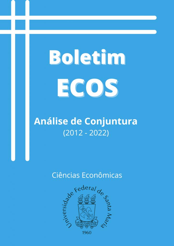 É com muita satisfação que convidamos os(as) integrantes do Departamento de Economia e Relações Internacionais para o lançamento da 1ª edição do Boletim Ecos. O documento é resultado dos trabalhos desenvolvidos no âmbito da disciplina de Laboratórios de Prática em Economia A (ERI 1067), que compõe o currículo do Curso de Ciências Econômicas da Universidade Federal de Santa Maria desde o ano de 2020. A redação do boletim de análise de conjuntura foi realizada pelos(as) discentes do Curso de Ciências Econômicas, sob orientação das professoras Ednalva Felix da Neves, Rita Inês Paetzhold Pauli e Sibele Vasconcelos de Oliveira.