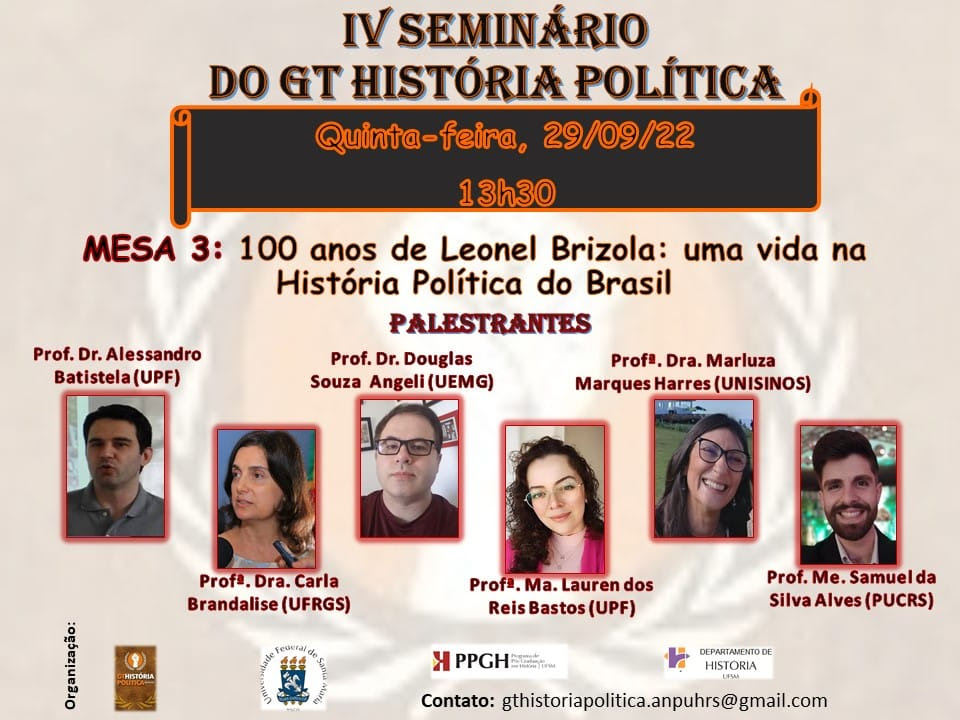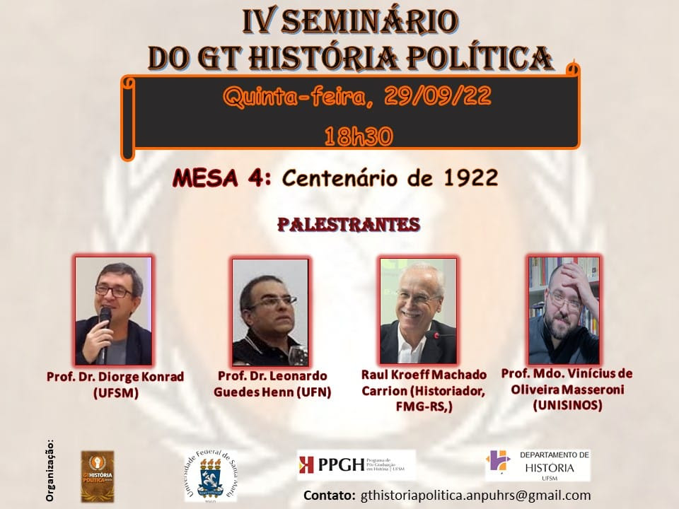 Convite para o IV SEMINÁRIO DO GT HISTÓRIA POLÍTICA da UFSM