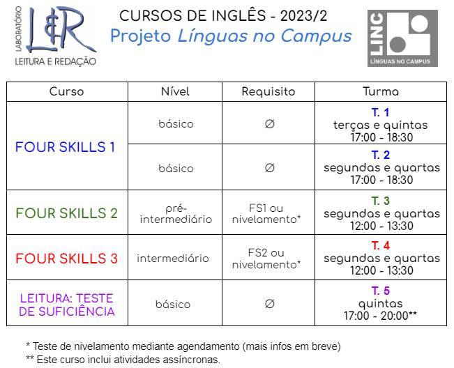 Divulgação Cursos de Inglês Projeto LINC – Línguas no Campus