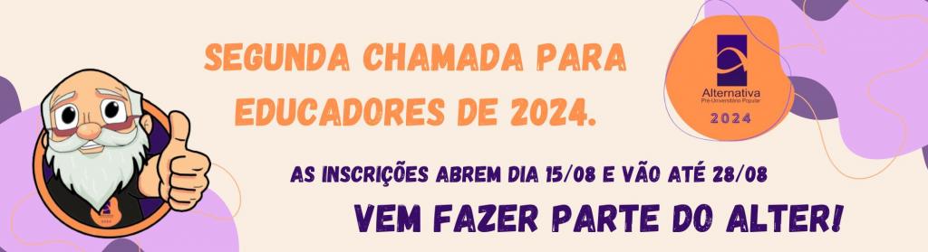 Está aberta a CHAMADA GERAL DE EDUCADORES de 2024/2 PARA O P.U.P ALTERNATIVA!