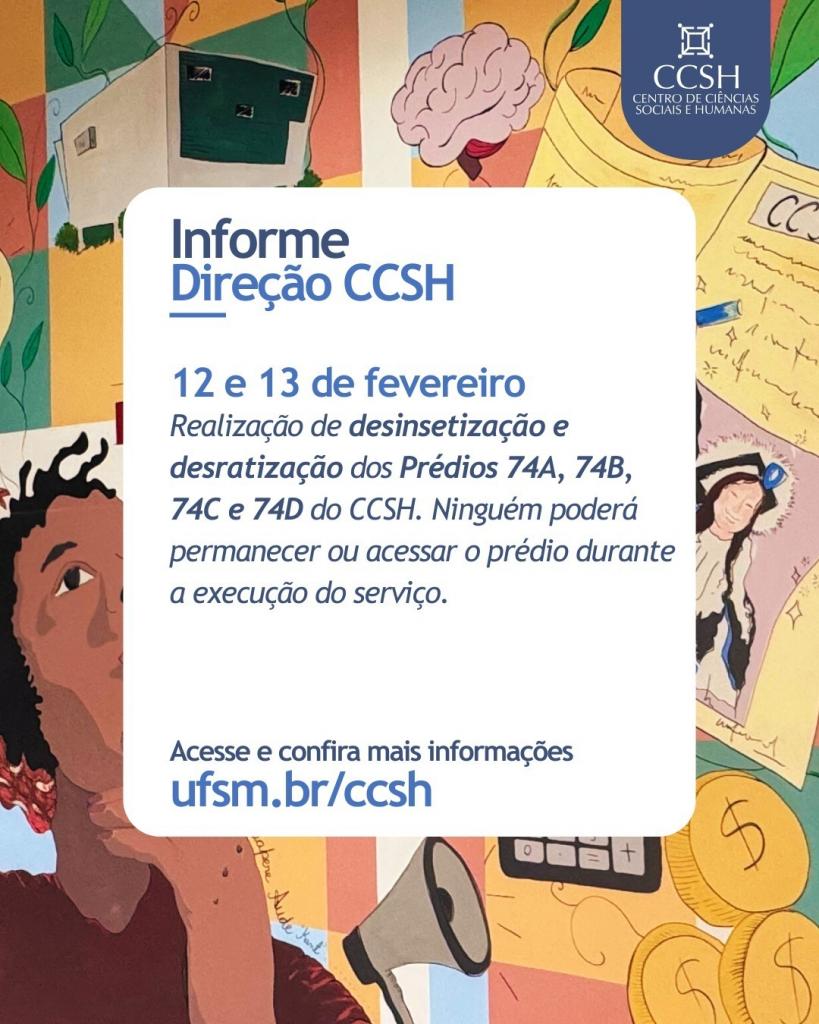 ⚠ Prédios do CCSH estarão fechados nos dias 12 e 13 de fevereiro