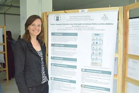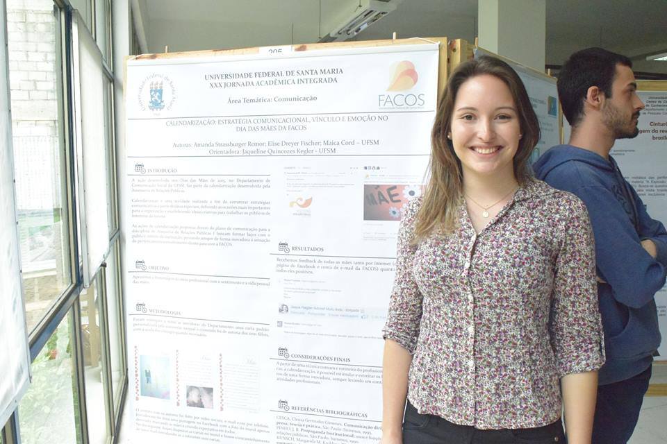 Curso de Relações Públicas teve expressiva participação na 30ª JAI da UFSM. Na manhã da última quarta-feira (21), alunos e egressos do Curso apresentaram seus trabalhos. Ao todo, 22 relatos de atividades vinculadas a projetos de ensino, pesquisa e extensão, foram avaliados por professores da área e prestigiados pelos participantes. Essa interação potencializa o desempenho dos envolvidos e qualifica a formação em diversas áreas que o Relações Públicas pode atuar. A 30ª Jornada Acadêmica Integrada da UFSM ocorreu dos dias 19 à 23 de Outubro e contou, nesta edição, com mais de 3.800 trabalhos apresentados.12189523 785644494914786 4150181651075113798 n12122437 785644478248121 5587877601625090442 n12047072 785644501581452 550744205095630712 n12115643 785644481581454 7095010686999958914 n12188940 785644471581455 7588256087604567895 n12108243 785644461581456 2274411419203133312 n11260704 785644474914788 8114219854023912580 n