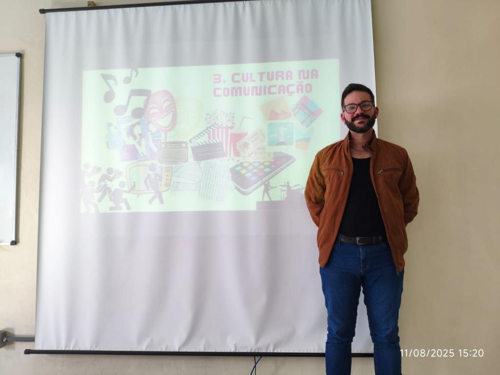 No dia 11 de agosto de 2025, o doutorando em Comunicação do POSCOM/UFSM, Victor Cesar Rodrigues Carvalho, ministrou a palestra “Cultura: breves conceitos” para a turma da disciplina Gestão de Projetos Culturais, do 2º semestre do curso de Relações Públicas da UFSM, ministrada pela Profa. Dra. Melina de Souza Mota.