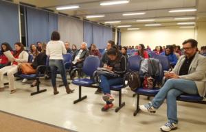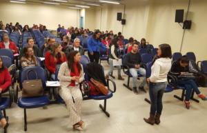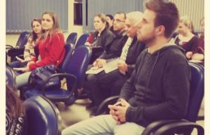 Aula pública com a presença da Dª Silvia Tejadas que realizou conferencia a convide dos professores Dr. Jairo Oliveira e Dª Sheloa Koucorek sobre o tema “Serviço Social no Ministério Público: Caminhos para Assessoria no Direito Difuso e Coletivo
