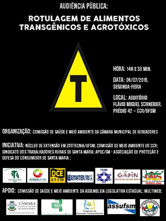 UFSM abre espaço para discussão sobre transgênicos e agrotóxicosEm abril deste ano, o Plenário da Câmara dos Deputados aprovou o Projeto de Lei 4148/08, que acaba com a exigência do símbolo [...]