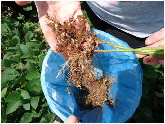 Figura 01: Coleta de raízes infectadas com nematóides do gênero Meloidogyne spp.
