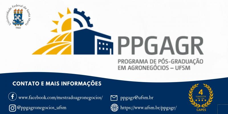 O curso de Pós-Graduação em Agronegócios está localizado em Campus Palmeira das Missões na modalidade Mestrado - Presencial sendo Matutino o seu turno de funcionamento. A área de conhecimento do curso é classificada como Desenvolvimento de Processos Agroindustriais e Ambientais. Atualmente, a coordenação é de responsabilidade de NELSON GUILHERME MACHADO PINTO, a coordenação substituta de CRISTIAN FATURI e a secretaria de ADRIANA MARTINS DA SILVA.