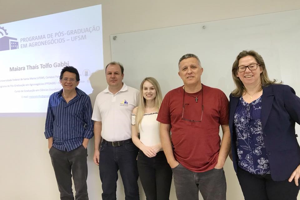 No último dia 12/11/20182 realizou-se a qualificação do projeto de dissertação submetido ao Programa de Pós-Graduação em Agronegócios (PPGAGR/UFSM) – Mestrado Acadêmico. Nesta oportunidade, a discente Maiara Thaís Tolfo Gabbi, orientanda dos profºs Dr. Nilson Luiz Costa e profº Dr. Gabriel Nunes de Oliveira (coorientador), apresentou o estudo do  “Complexo soja na américa do sul: uma análise das trajetórias de exportação do brasil e da argentina no período de 1990 a 2018”.
