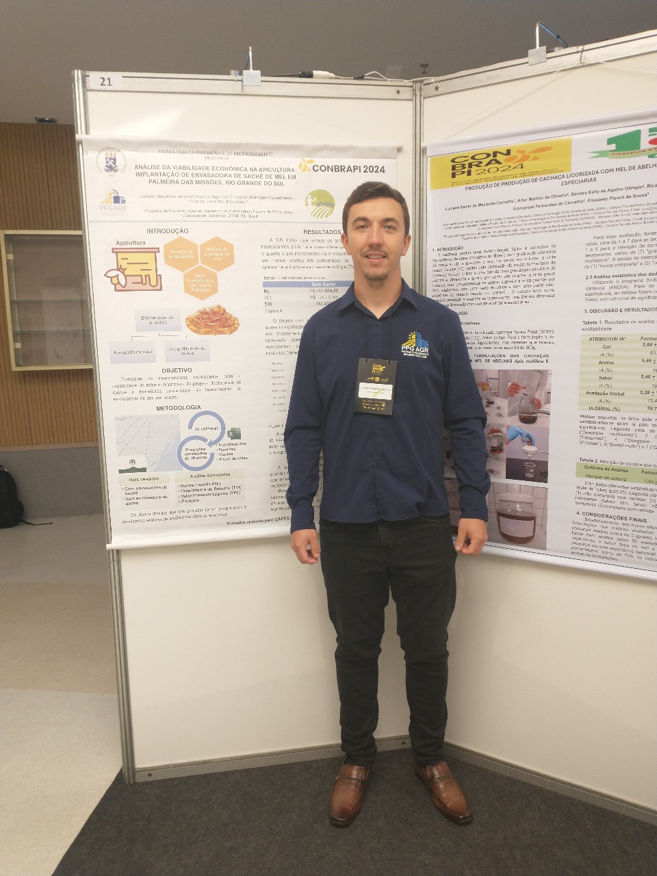 Entre os dias 27 e 30 de novembro de 2024, o município de Aparecida-SP foi palco do XXIV Congresso Brasileiro de Apicultura e X Congresso Brasileiro de Meliponicultura (CONGRAPI 2024), reunindo especialistas, pesquisadores e profissionais da área em um dos maiores eventos do setor no Brasil. Representando a Universidade Federal de Santa Maria (UFSM), o aluno do Programa de Pós-Graduação em Agronegócios, Jonhatan Magalhães Barcelos, marcou presença no evento.