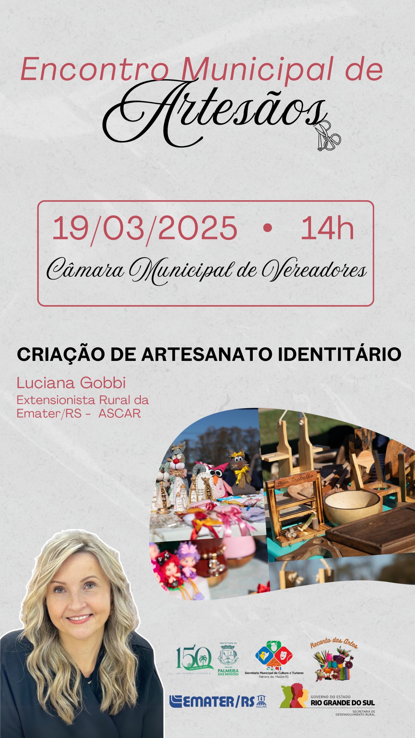 Uma das ações do projeto Estratégias e Alternativas para o Desenvolvimento Regional Sustentável vinculado ao Programa UFSM Além do Arco – (PROEXT-PG), aconteceu no dia 19 de março, às 14h, a Câmara Municipal de Vereadores recebeu um importante evento voltado à valorização da cultura e do artesanato de Palmeira das Missões.