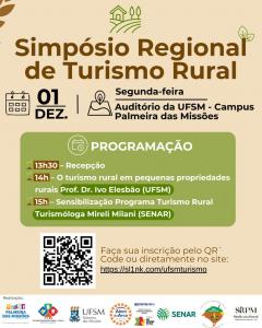 Na tarde do dia 01 de dezembro de 2025, foi realizado o Simpósio Regional de Turismo Rural, no Auditório da UFSM – Campus Palmeira das Missões. A atividade integrou as ações do projeto e teve como objetivo promover a discussão de alternativas e possibilidades para o fortalecimento do meio rural na região. O evento contou com a participação da professora Dra. Rosani Spanevello, coordenadora do projeto Estratégias e Alternativas para o Desenvolvimento Regional Sustentável, que destacou a importância de ampliar o debate sobre o desenvolvimento rural, considerando desafios como o envelhecimento da população e os efeitos das mudanças climáticas. A programação incluiu ainda palestra sobre turismo rural em pequenas propriedades, ministrada pelo Prof. Dr. Ivo Elesbão (UFSM), e atividade de sensibilização do Programa de Turismo Rural, conduzida pela turismóloga Mireli Milani (SENAR). A atividade contribuiu para a reflexão sobre novas formas de geração de renda, inovação e permanência no campo, reforçando o papel do turismo rural como estratégia de desenvolvimento sustentável.