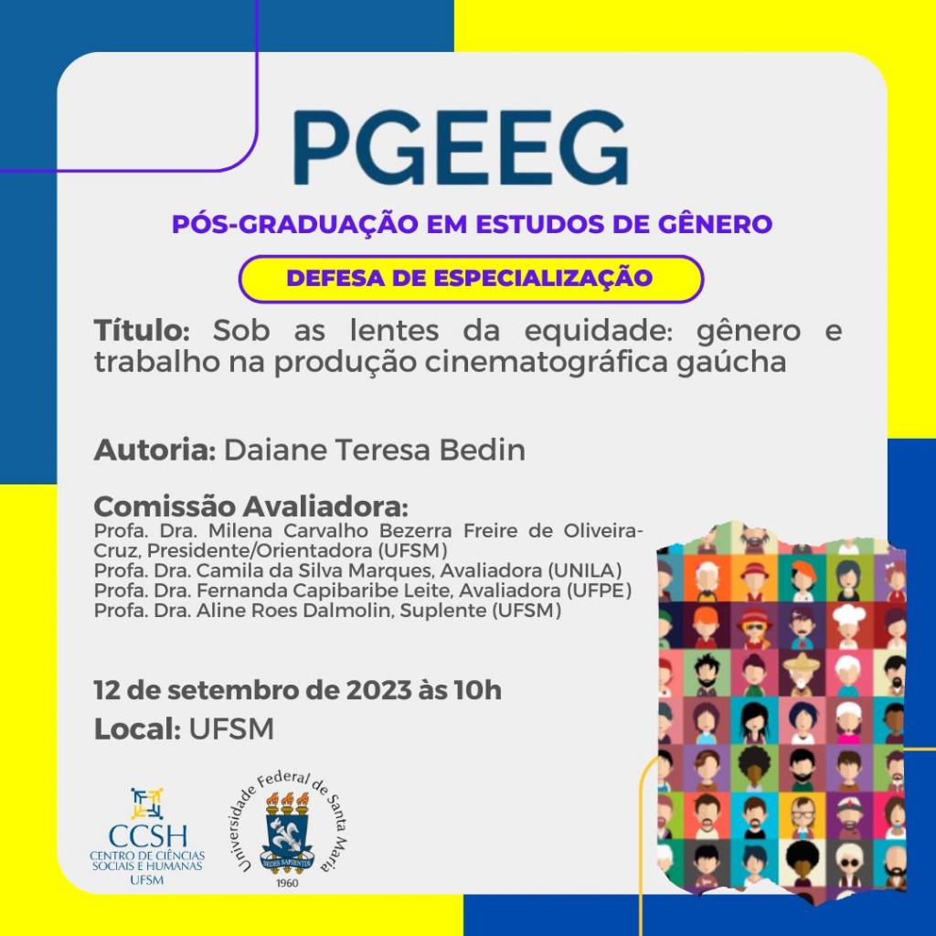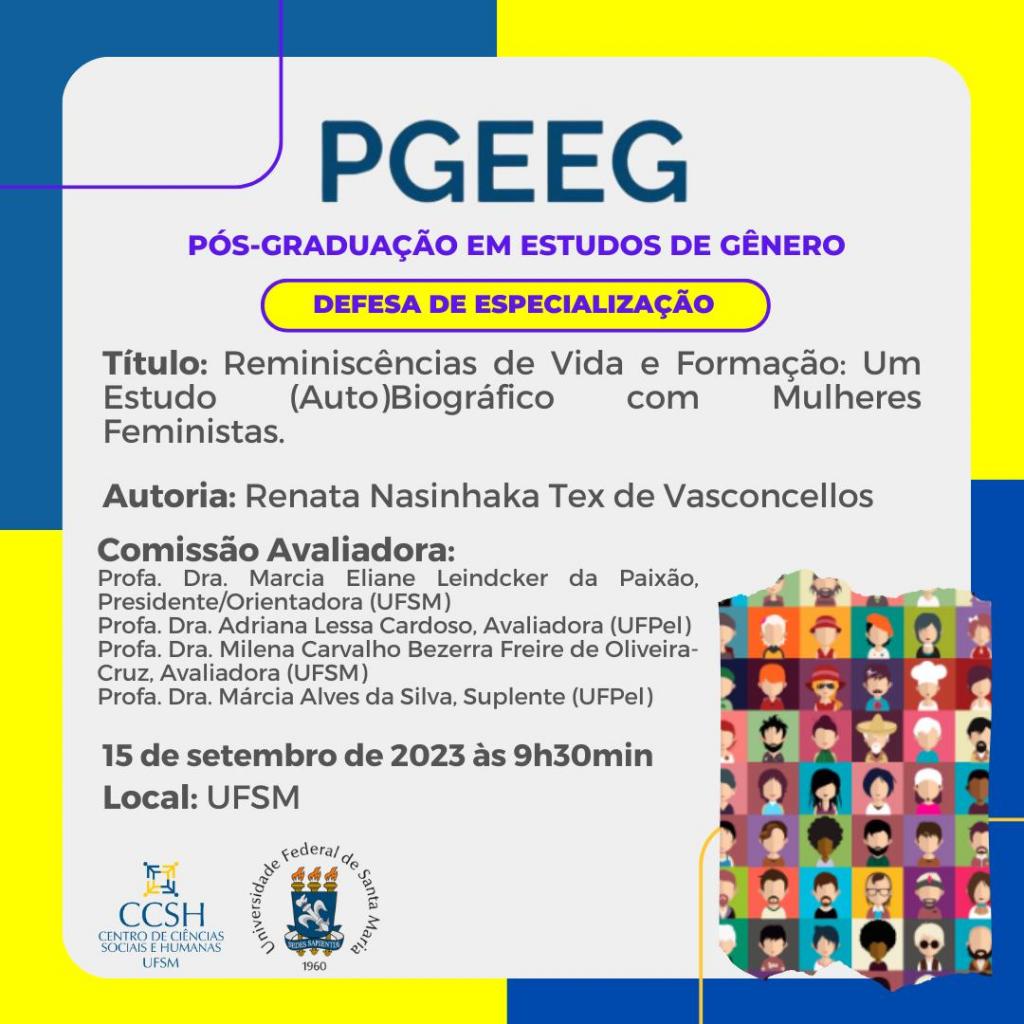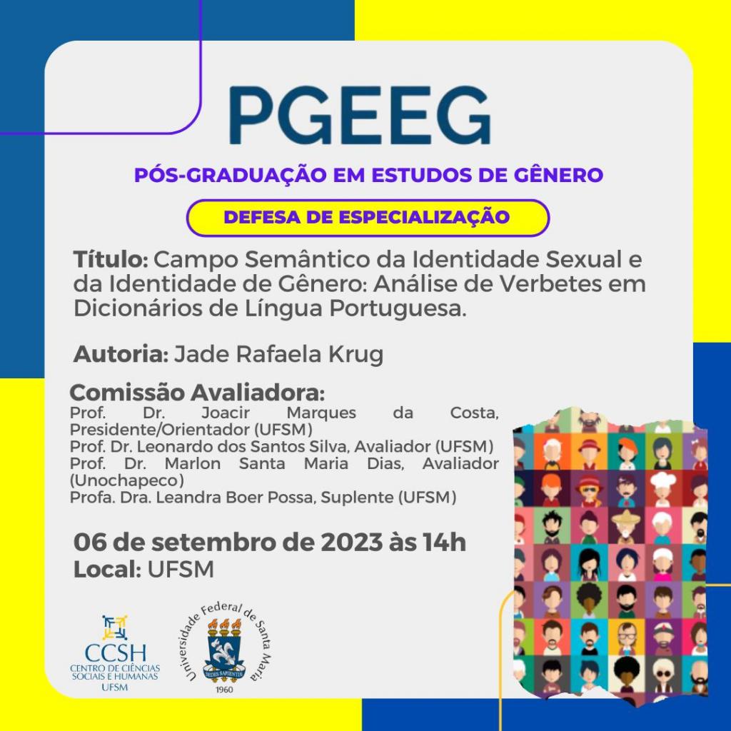 A Pós-Graduação – Especialização em Estudos de Gênero divulga a banca de defesa de especialização do aluno Christiano Paulo Kloss,…