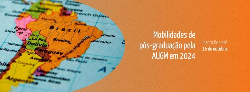 Estão abertas as inscrições para mobilidades pela AUGM (Associação das Universidades do Grupo Montevidéu) para estudantes de pós-graduação da UFSM, com previsão de realização do intercâmbio durante o ano de 2024. O edital pode ser acessado neste link e aceita inscrições até o dia 16 de outubro, com divulgação final dos selecionados até dia 19 de outubro e início das nomeações a partir de 22 de outubro. Neste semestre, estão sendo ofertadas oito vagas, com informações sobre a oferta disponíveis neste link.