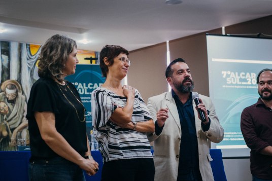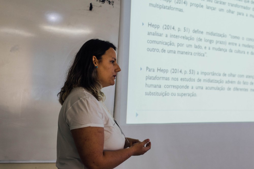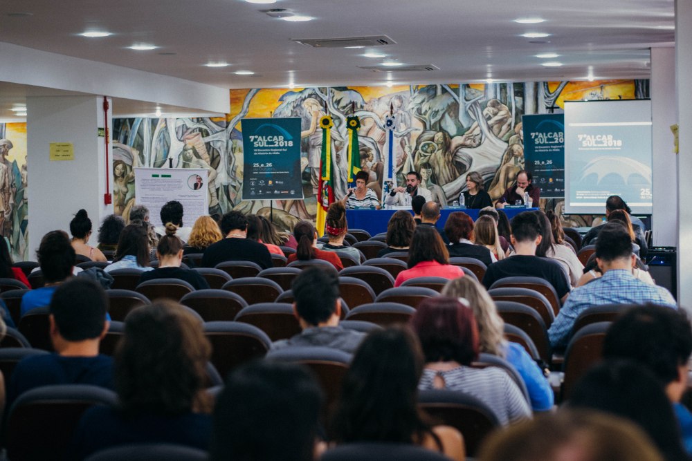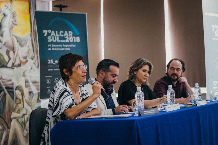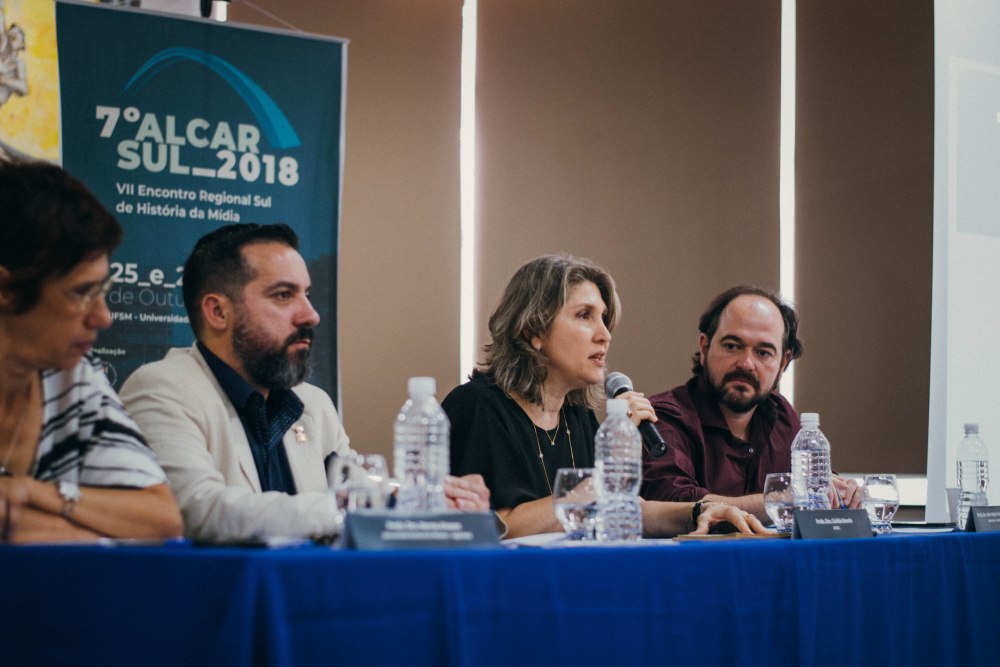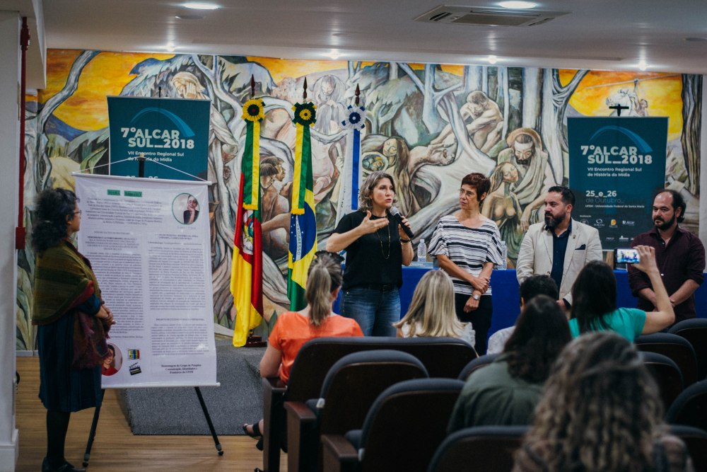 Na manhã do dia 26 houve a segunda rodada de debates do 7º Encontro Regional Sul de História da Mídia, no salão Imembuí na Reitoria da Universidade Federal de Santa Maria (UFSM). Pesquisar sobre a história presente é um imperativo no contexto político atual, assegurou Norma Alvares, professora de história da Universidad de Misiones, na Argentina. A pesquisadora da Universidade Federal de Santa Catarina (UFSC), Cárlida Emerim, ao falar da relação entre a televisão e o AI5 no Brasil, lembrou uma frase do jornalista Alberto Dines: “os anos de chumbo têm sido insuficientemente estudados na academia”. Emocionada, a pesquisadora ressaltou a importância de se contribuir para uma sociedade democrática de direito e prestou homenagem à professora da Unipampa, Mara Regina Rodrigues Ribeiro, que faleceu no último dia 14. “Mara Regina vive, Mariele vive, Vladmir Herzog vive!”.