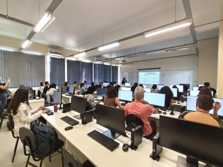 No último dia 19 de setembro, o Programa de Pós-Graduação em Comunicação Social (Poscom) realizou um curso voltado para comunicadores sobre bibliometria e a utilização do software Bibliometrix. O encontro, ministrado pela doutoranda do Poscom, Sendi Spiazzi, iniciou às 14h no Laboratório de Informática 4422 do prédio 74C, e teve participação de quase 40 pessoas. Fizeram o curso alunos da graduação, de mestrado, de doutorado, além de docentes da UFSM e acadêmicos de outras instituições.