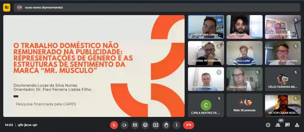 Na última segunda (11) e terça-feira (12) de março, o Grupo de Pesquisa (GP) Estudos Culturais e Audiovisualidades, liderado pelo Dr. Flavi Ferreira Lisboa Filho, registrou o início suas atividades do semestre. Para marcar o retorno ao período letivo de forma especial, os membros do GP e alguns externos foram convidados a assistir as defesas de Mestrado em Patrimônio Cultural de Ana Paula Porto de Freitas, no dia 11, e do Doutorado em Comunicação de Lucas Silva Nunes, no dia 12. Além disso, os alunos matriculados no componente de Epistemologia dos Estudos Culturais, disciplina ofertada no PPG em Comunicação (POSCOM), também participaram.