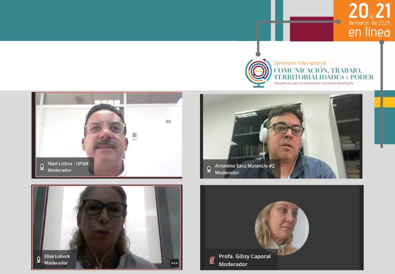 Nesta quarta-feira (20) o GP Estudos Culturais e Audiovisualidades esteve presente no Seminário Internacional Comunicação, Trabalho, Territorialidades e Poder e o 1º Encontro de Grupos de Pesquisa em Comunicação Brasil/Espanha. O evento, que conta com a organização bilateral entre a Universidade Federal de Santa Maria (UFSM) e a Universidad de Sevilla (US), ocorreu de forma simultânea nos dois países.