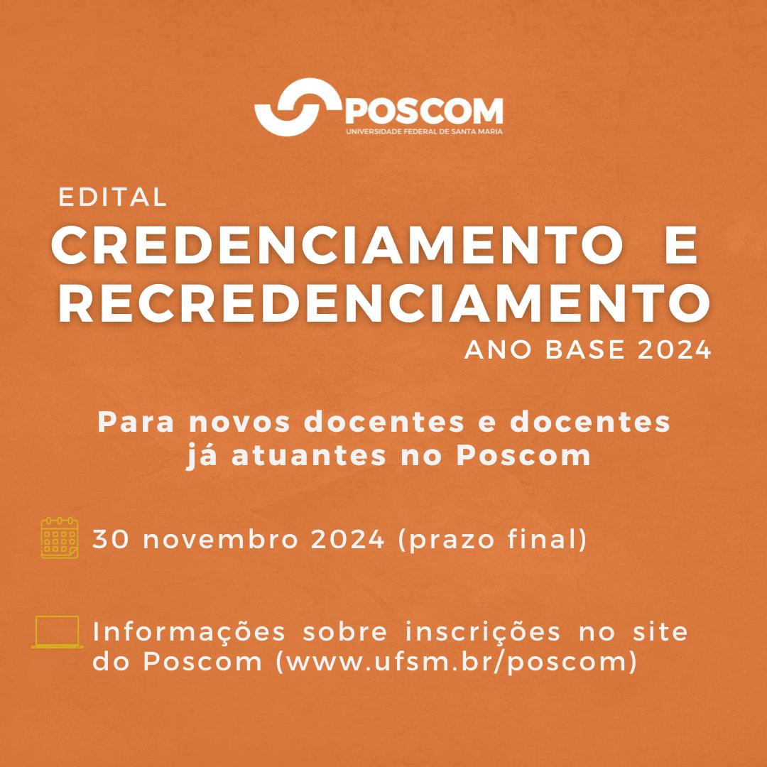 Poscom divulga resultado preliminar da seleção para mestrado e doutorado regida pelo edital 065/2024A Coordenação do Programa de Pós-Graduação em Comunicação da UFSM divulga o resultado preliminar do Processo Seletivo dos Cursos de Mestrado e [...]