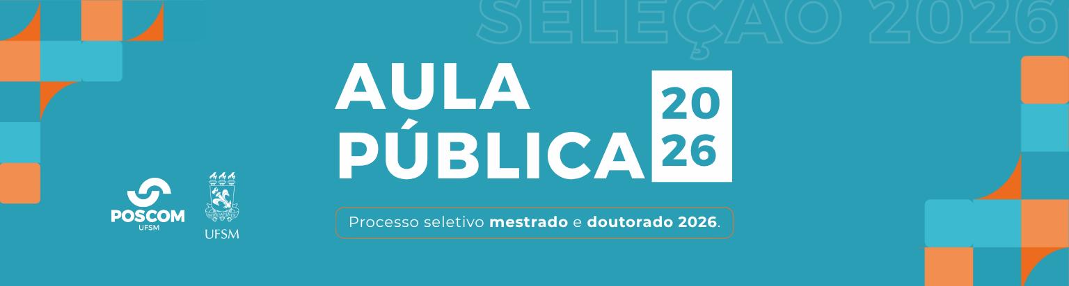 O Programa de Pós-Graduação em Comunicação (Poscom) da Universidade Federal de Santa Maria (UFSM) realizará uma aula pública para apresentar os editais de seleção de Mestrado e Doutorado com ingresso em 2026. O evento ocorrerá na sexta-feira, 10 de outubro de 2025, às 11h, e será transmitido ao vivo pelo canal do YouTube do Poscom.