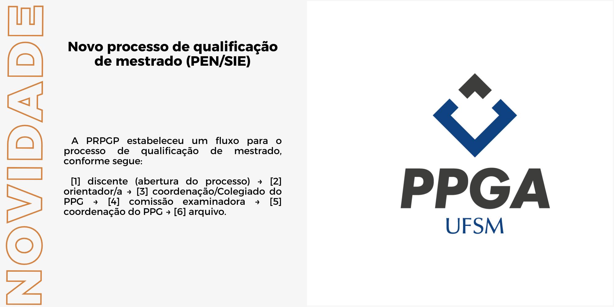 • A SIPOS salienta que durante a adequação ao novo fluxo de qualificação de mestrado estabelecido pela PRPGP, está utilizando a plataforma PEN/SIE durante todo o processo, cujas novas orientações são as seguintes: