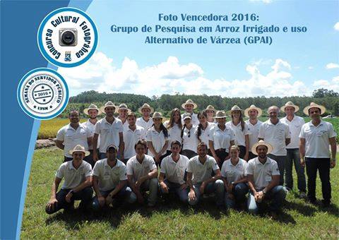 No mês de outubro, o Grupo de pesquisa em Arroz Irrigado e Uso Alternativo de Várzea foi campeão do concurso cultural fotográfico “Orgulho da minha Equipe”, promovido pelo Núcleo de Educação e Desenvolvimento (NED) da Pró-Reitoria de Gestão de Pessoas da Universidade Federal de Santa Maria, em comemoração à semana do servidor público.