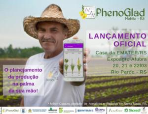O aplicativo para dispositivos móveis denominado PhenoGlad Mobile – RS foi lançado oficialmente durante a 18ª edição da Expoagro Afubra, a maior feira da agricultura familiar no Brasil, que aconteceu em Rio Pardo, de 20 a 22 de março de 2018 e recebeu 98 mil visitantes nos três dias do evento. A solenidade de lançamento do aplicativo ocorreu no primeiro dia da feira, no Auditório do Parque da Expoagro durante o Workshop “Aplicativos para a Agropecuária”. Estavam presentes na solenidade autoridades do Agronegócio entre os quais o Presidente da Emater/RS-Ascar Clair Tomé Kuhn, o Chefe Geral da Embrapa Clima Temperado Clenio Nailto Pillon e o Coordenador da 18° Expoagro Afubra Marco Antonio Dornelles.