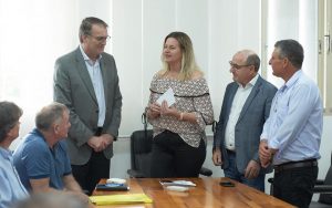 Quem veio de longe e também participou da reunião na tarde de quinta-feira, 11, foi uma comitiva vinda de Dilermando de Aguiar/RS. Representantes da Secretaria de Educação e da direção da Escola Municipal Valentim Bastianello vieram cumprimentar o reitor da UFSM e fazer o convite para o Dia de Campo que a entidade estará realizando em agosto com parte do projeto de extensão “Flores para Todos”, no qual a escola é a mais recente Instituição a aderir ao projeto no Rio Grande do Sul. Além do convite, a diretora do colégio, Luciane Bello, enalteceu a parceria com a Emater e a Equipe PhenoGlad da UFSM no projeto Flores para Todos. O Reitor da UFSM, Paulo Burmann, acolheu a todos e se diz contente com as iniciativas e confirmou sua participação no Dia de Campo.