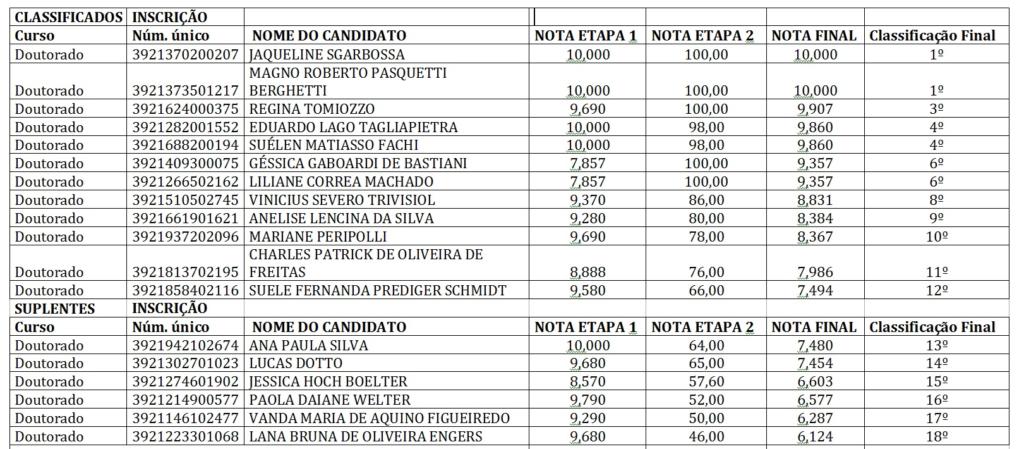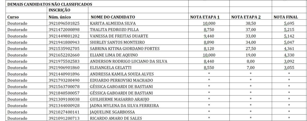 RELAÇÃO PARCIAL – SELEÇÃO INGRESSO 1º/SEM-2020