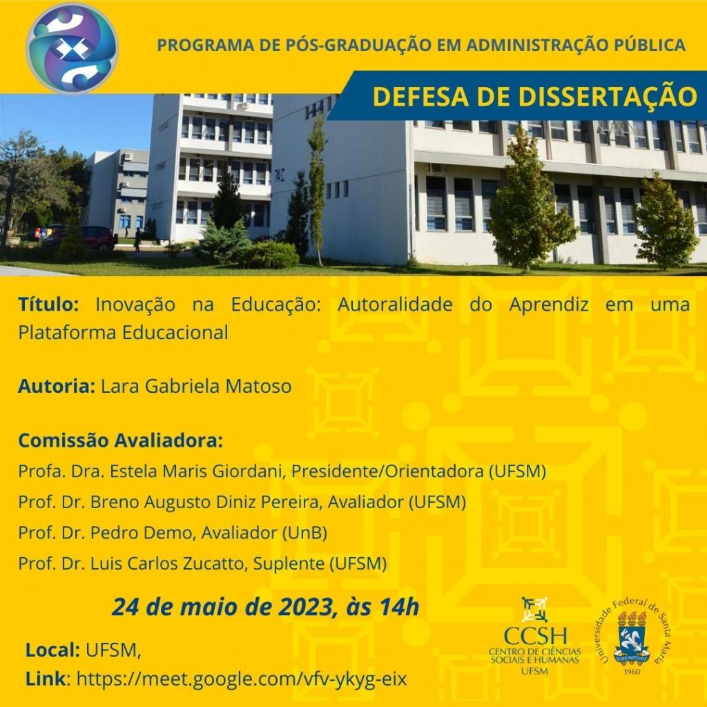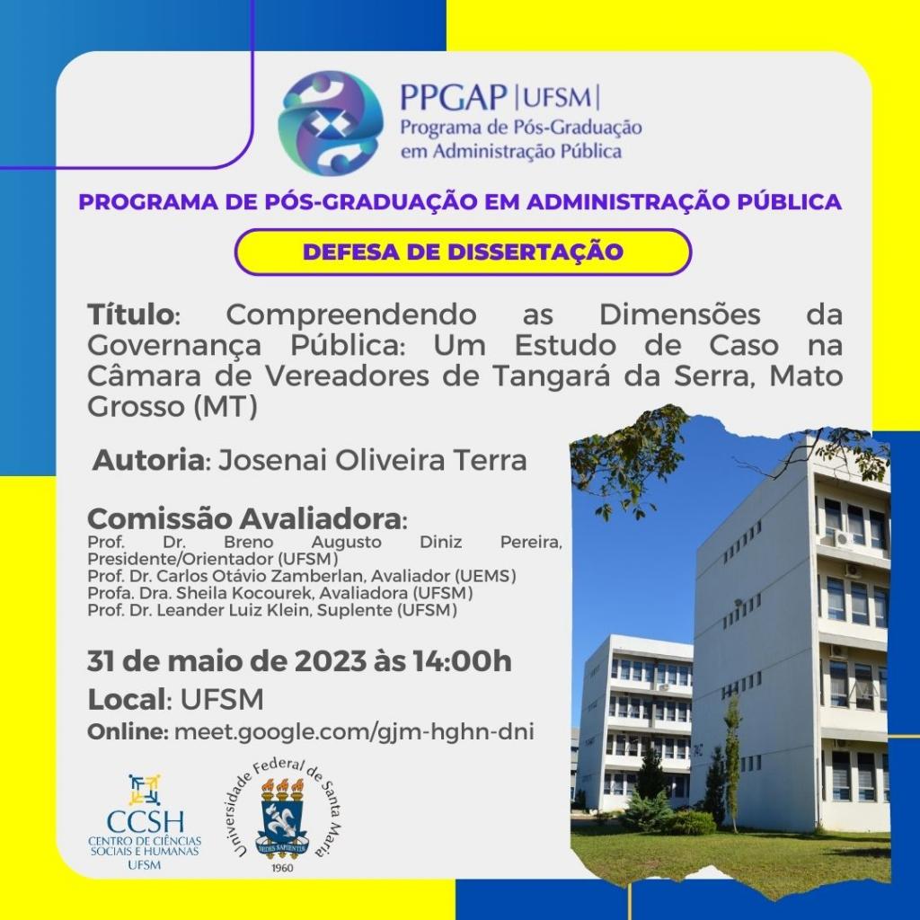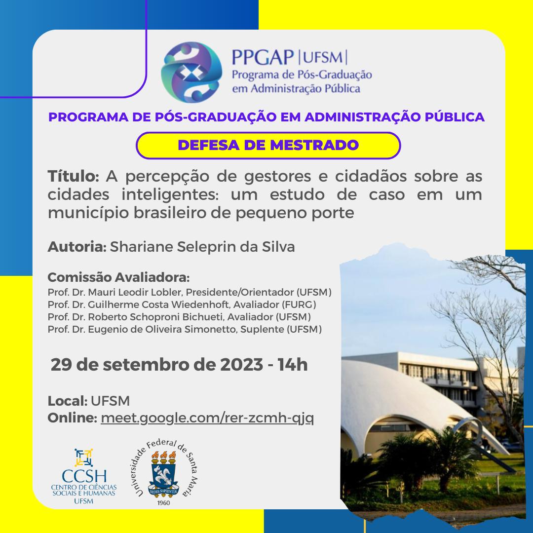 Defesa de mestrado – Renan da Mota DuarteO Programa de Pós-Graduação em Administração Pública divulga a banca de defesa de mestrado do aluno Renan da Mota Duarte, com o [...]