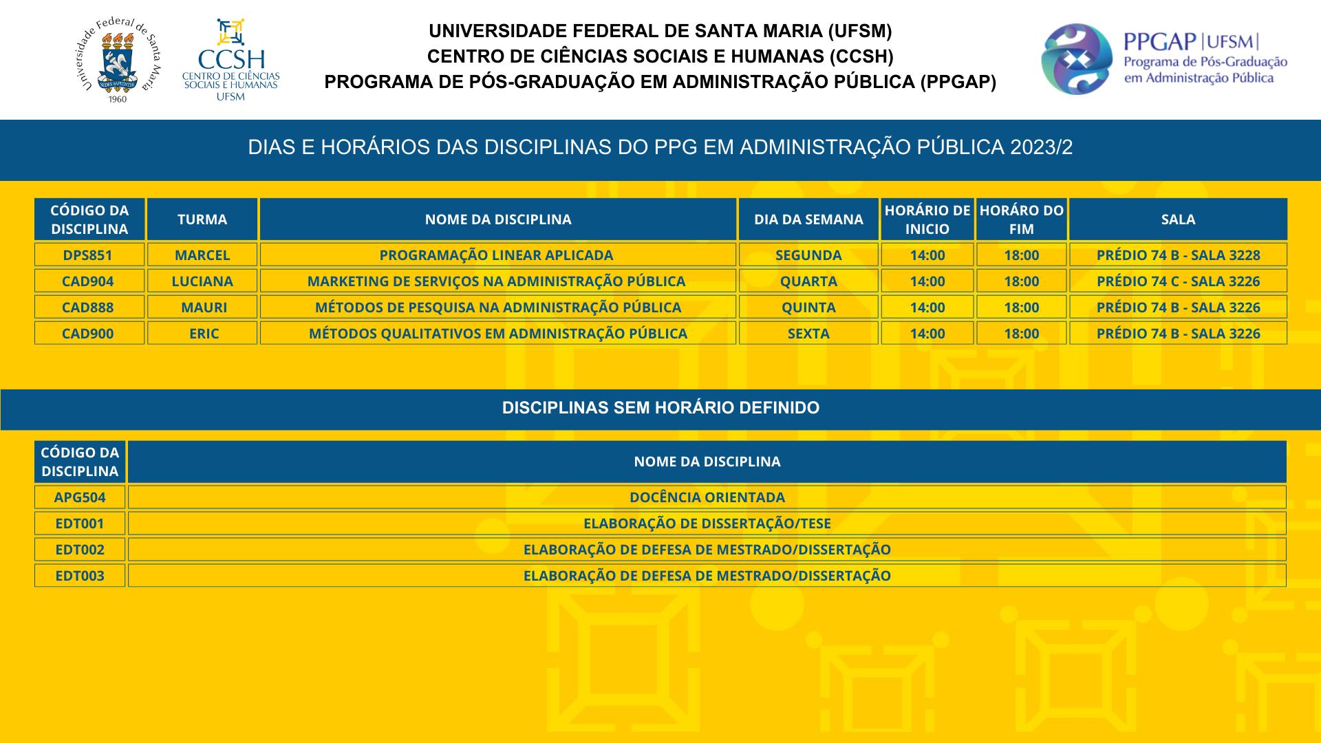 Defesa de mestrado – Rômulo Coutinho LucasO Programa de Pós-Graduação em Administração Pública divulga a banca de defesa de mestrado do aluno Rômulo Coutinho Lucas, com o título [...]
