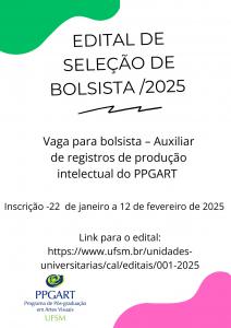 Aberta as inscrições para seleção de acadêmicos da Universidade Federal de Santa Maria para Bolsa Trabalho obtida junto ao Centro de Artes e Letras. Link para o edital: https://www.ufsm.br/unidades-universitarias/cal/editais/001-2025