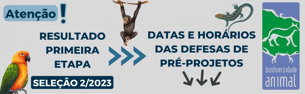 O Programa de Pós-Graduação em Biodiversidade Animal torna público o resultado da primeira etapa (Avaliação do Pré-Projeto de Tese e de Dissertaçãodo) do processo de seleção 2/2023 de Mestrado e Doutorado do Programa de Pós Graduação em Biodiversidade Animal da UFSM.