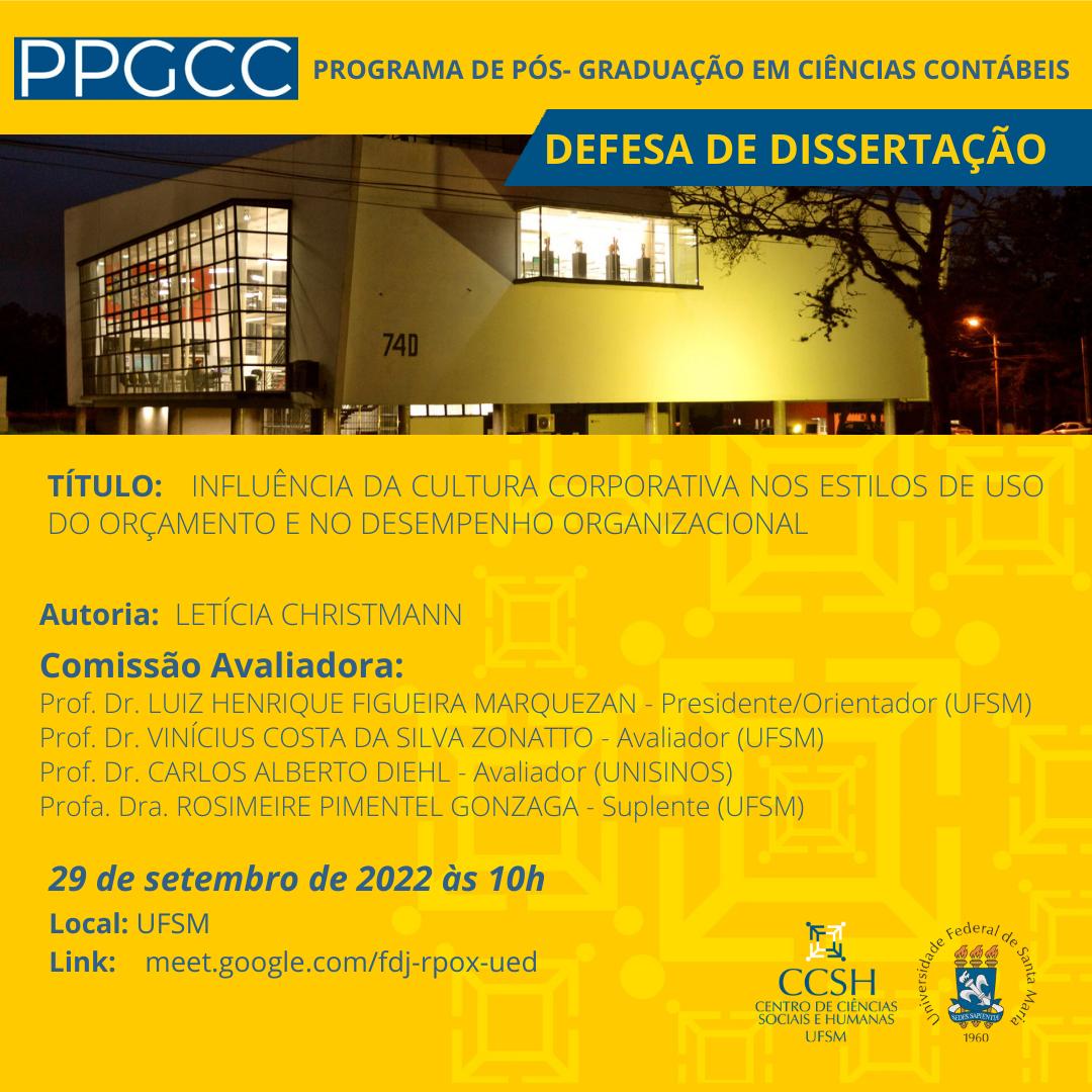 Defesa de Dissertação – LETÍCIA CHRISTMANN – 29/09/2022