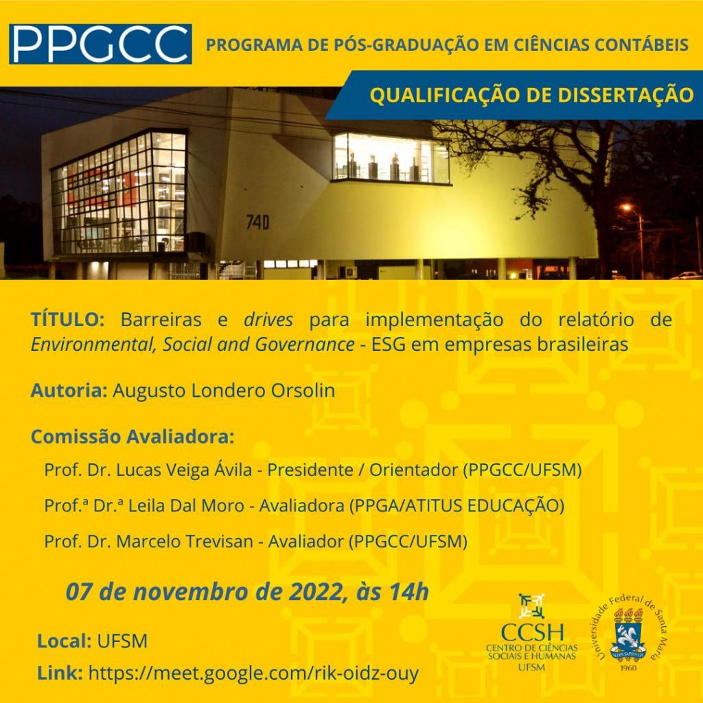 Defesa de Qualificação de Dissertação – Augusto Londero Orsolin