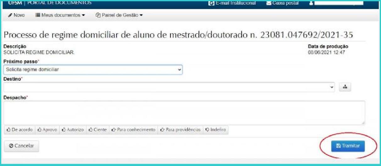 Conforme tela abaixo, ir em TRAMITAR.