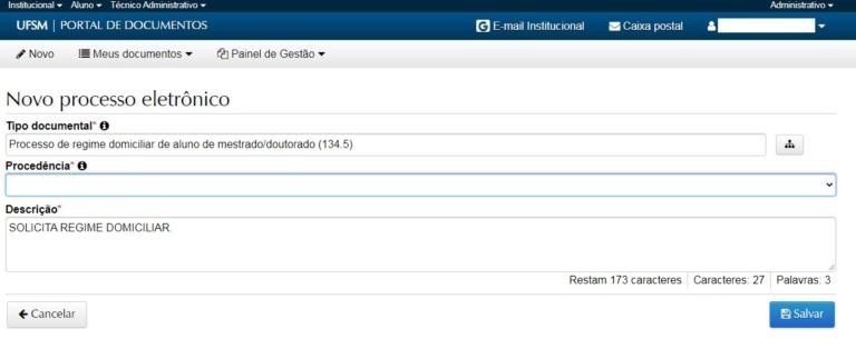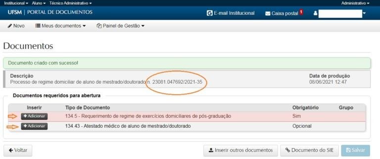 => O item ‘Tipo documental’ refere-se a qual tipo de processo você está abrindo e que é: Processo de regime domiciliar de aluno de mestrado/doutorado (134.5).