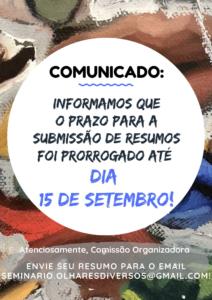 O prazo para a submissão de resumos foi prorrogado para o dia 15 de setembro.