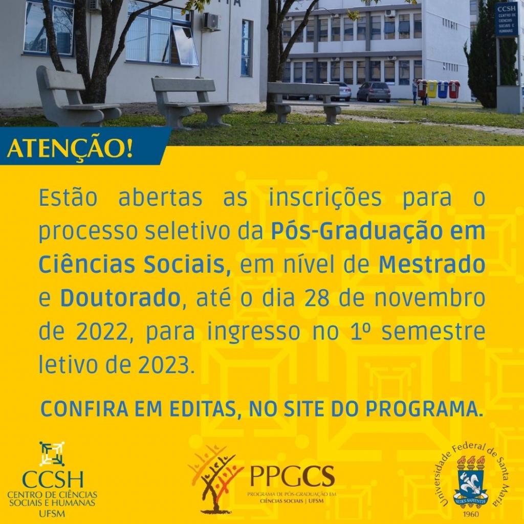 Abertura dos Editais de Seleção 2022/2 de Mestrado e Doutorado em Ciências Sociais, para ingresso em 2023/1