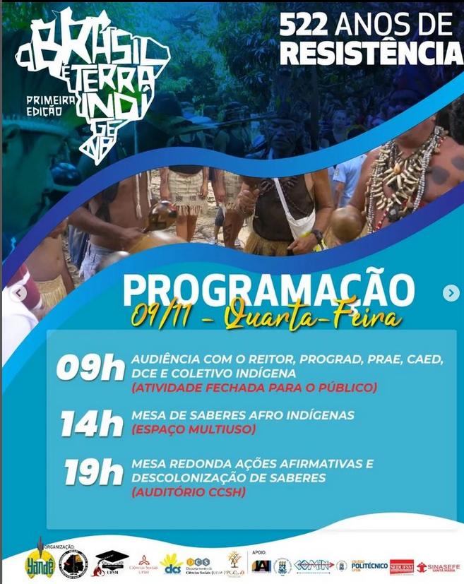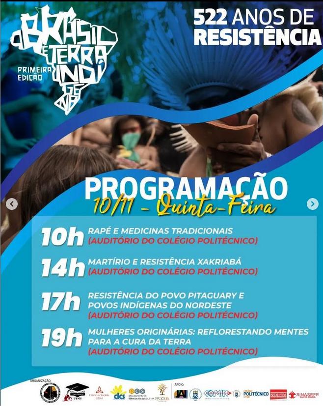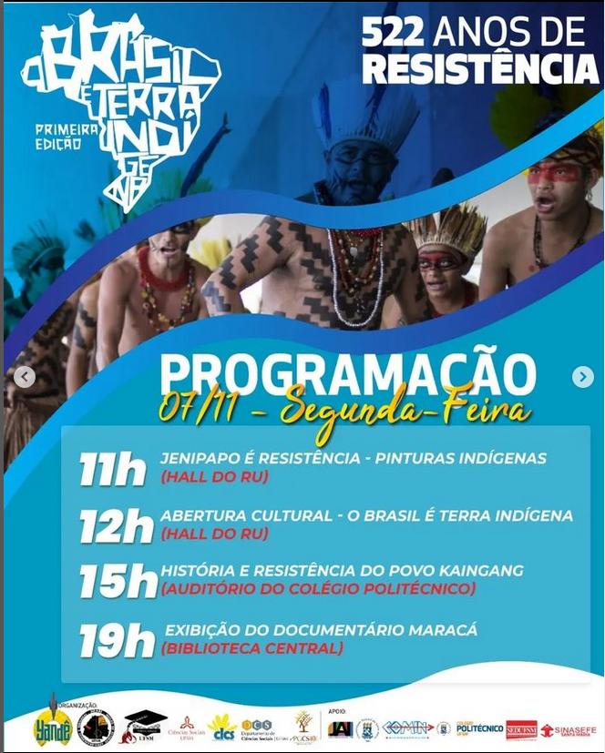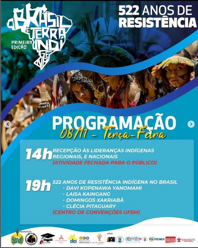 O Programa de Pós-Graduação, Cursos de Graduação e Departamento de Ciências Sociais da UFSM convidam para a primeira edição do evento BRASIL – Terra Indígena, de 07 a 10 de novembro