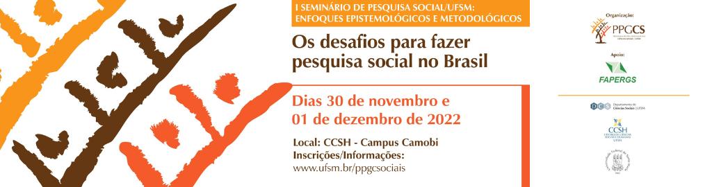 O Seminário de Pesquisa Social/UFSM: enfoques epistemológicos e metodológicos é organizado pelo PPG em Ciências Sociais, com o apoio da FAPERGS, do Depto. de Ciências Sociais/UFSM e do CCSH/UFSM. Tem o objetivo de promover o debate e a prática sobre Pesquisa Social. Nesta primeira edição será debatido o desafio para fazer pesquisa social no Brasil. E serão oferecidos minicursos para os e as participantes aprenderem ou aperfeiçoarem- se em técnicas e métodos de pesquisa.