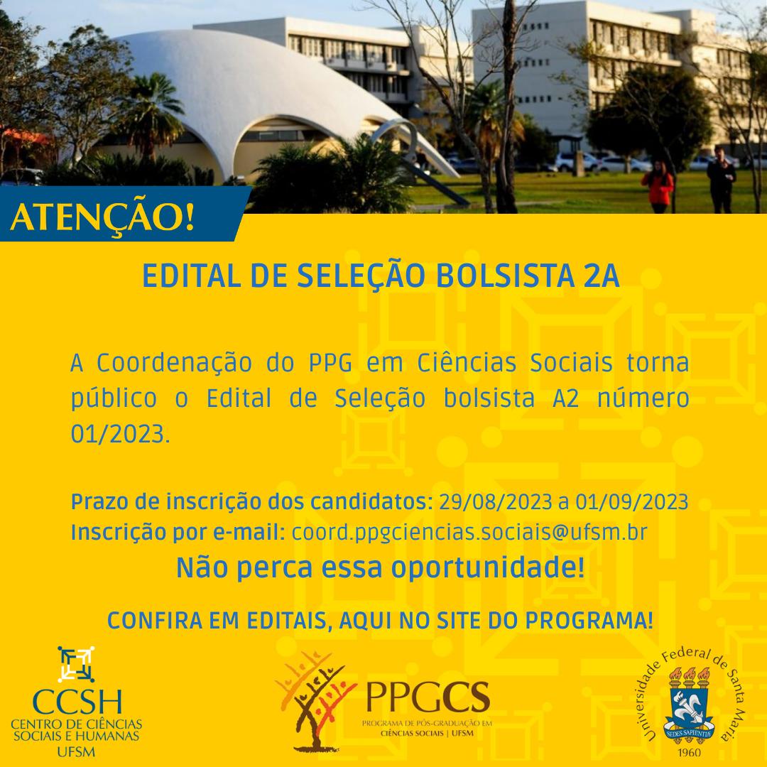 A Coordenação do PPG em Ciências Sociais torna público o Edital de Seleção bolsista A2 número 01/2023