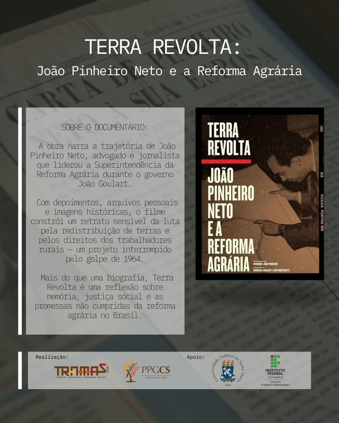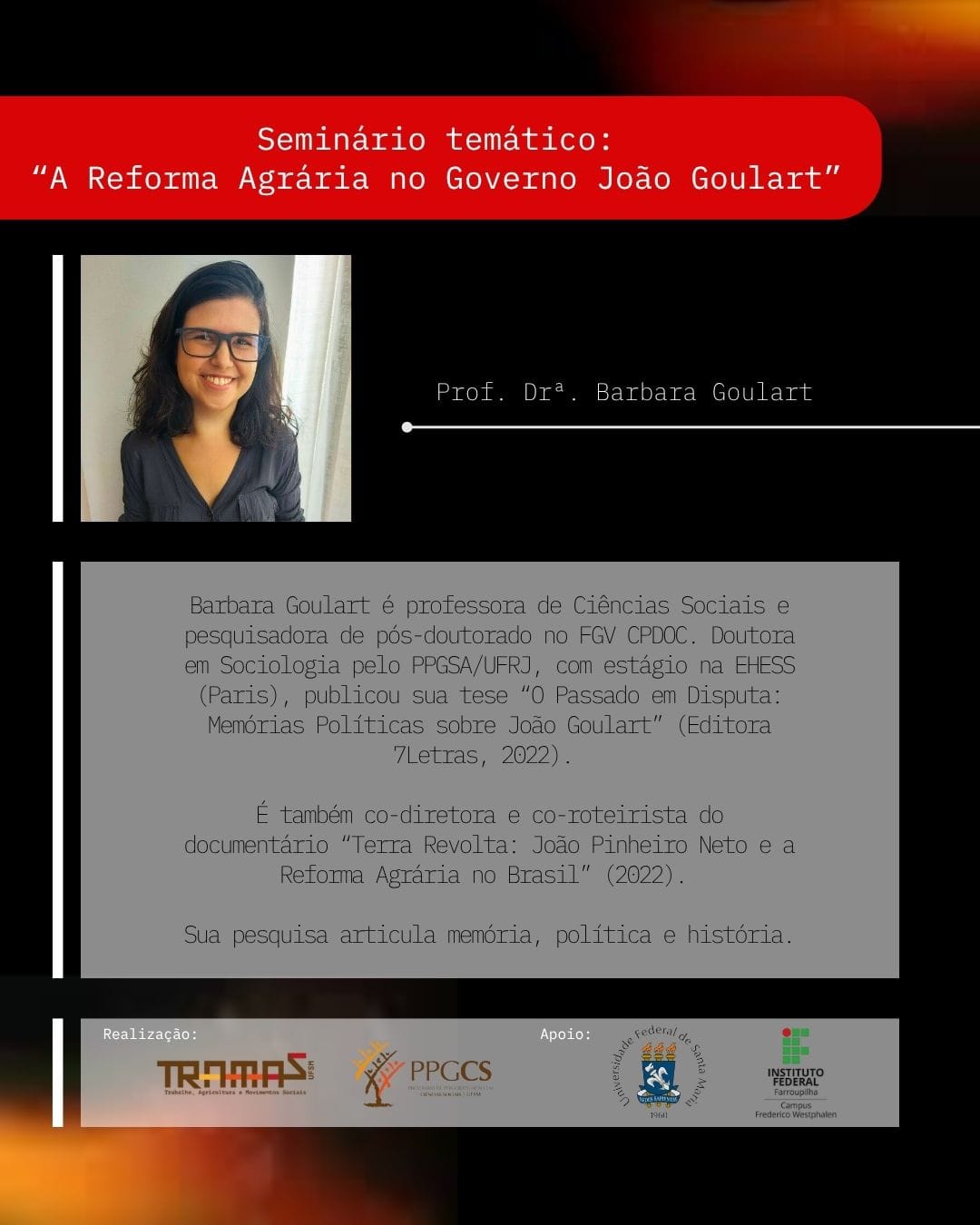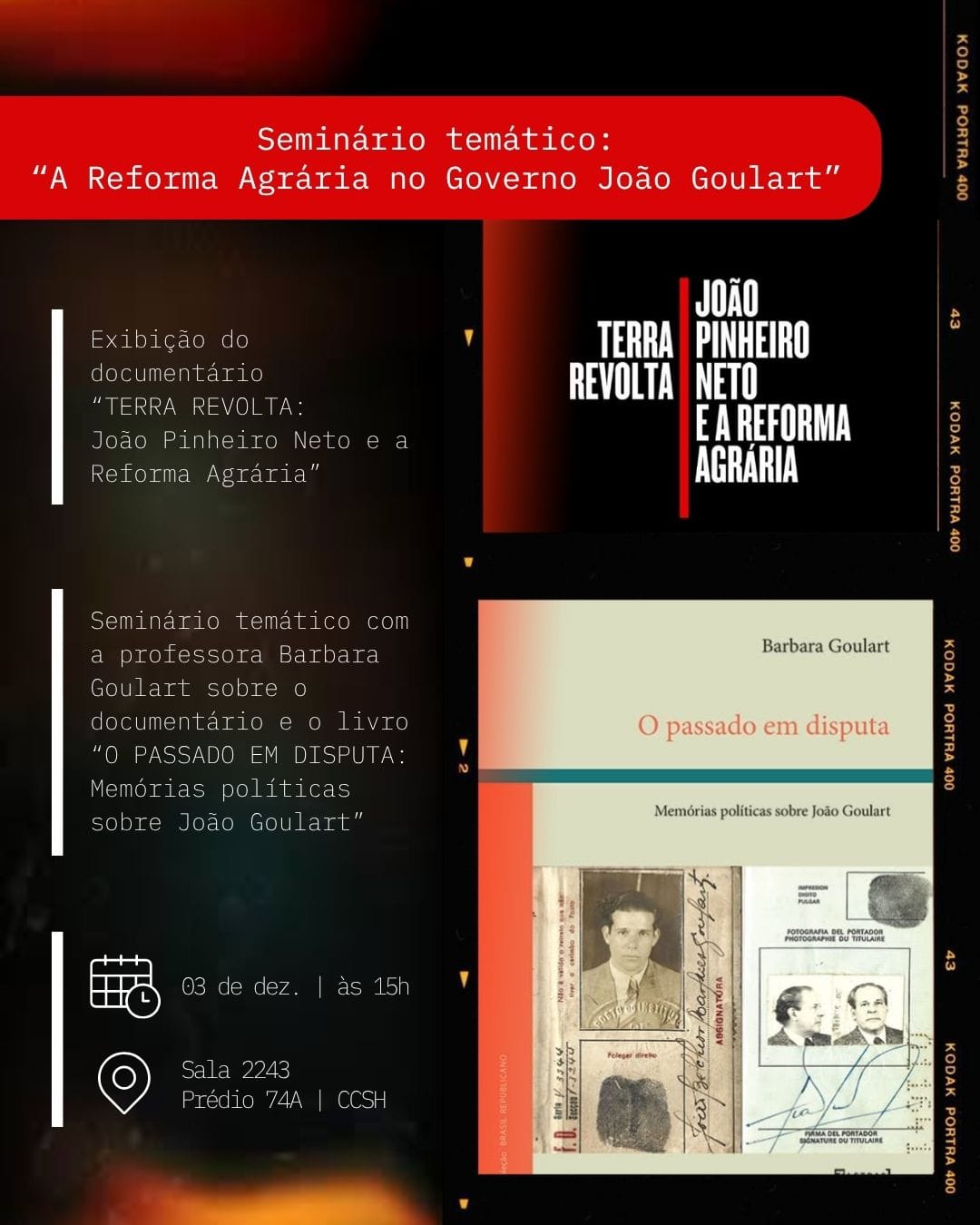 TRAMAS convida a Comunidade Acadêmica para o Seminário temático: ” A reforma agrária no governo João Goulart” dia 03/12/2025 sala 2243 – Prédio 74A CCSH/UFSM