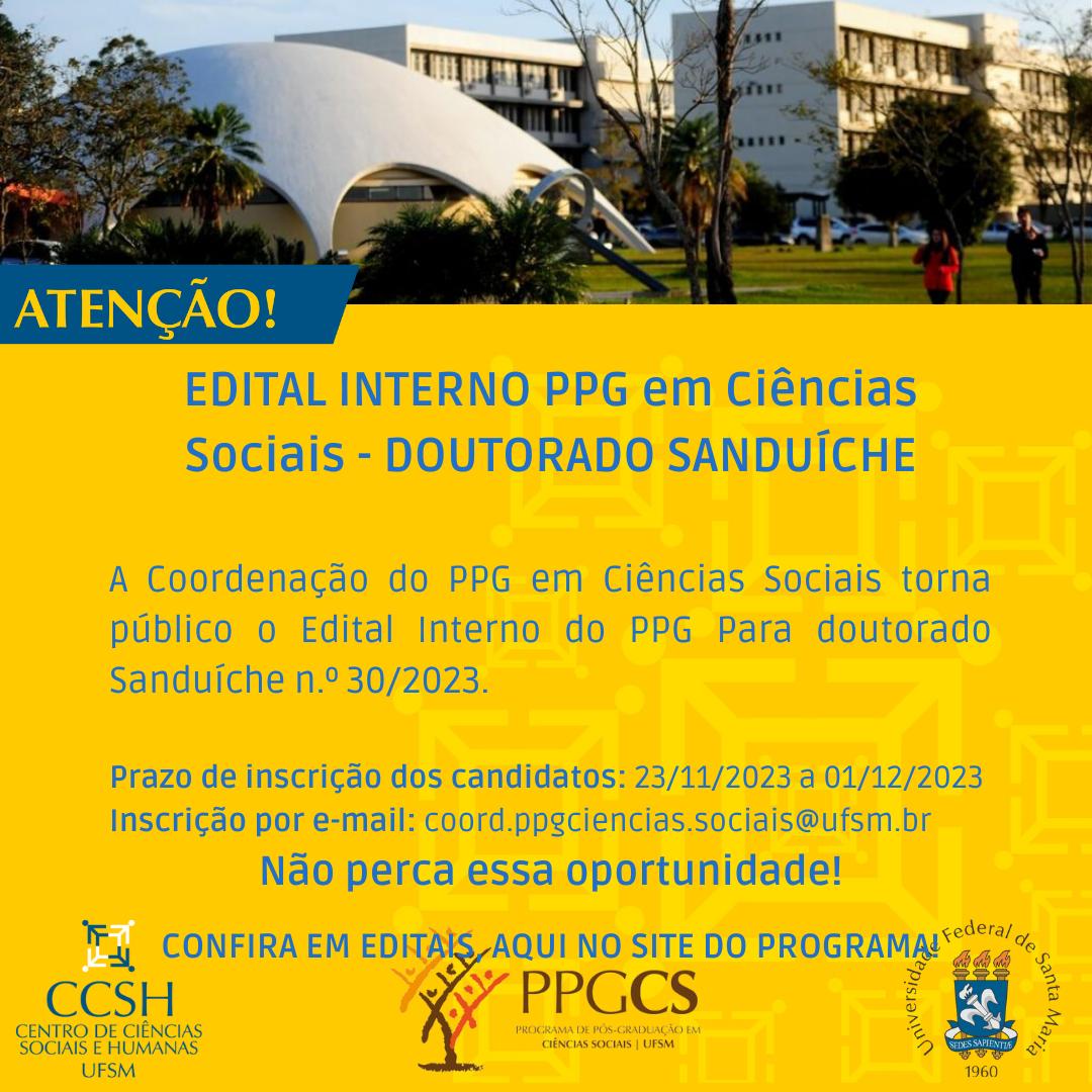PPGCSociais divulga data e horários das entrevistas da seleção de DoutoradoAcesse o cronograma na página do edital AQUI.